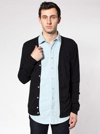 I think that this product is some kind of knock off. I own 2 other baby rib cardigan sweaters bought directly from American Apparel and they are amazing. The sweater I got from these folks unbuttons itself all the time and now has a huge patch of discoloration on both arms. Whatever you do, do not buy this sweater from them unless you only intend to wear it once.